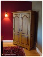 Superbe armoire à chapeaux de Gendarme. Trois tablettes ajustables sur crémaillères. Présentez-vous à la boutique de l’Atelier du vieux pin pour faire votre choix. Toutes nos armoires en pin sont confectionnées en atelier avec notre quincaillerie décorative et notre procédé de finition à l’ancienne.
