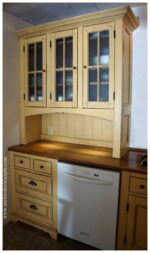 No d’item : CUI-032 Présentez-vous à la boutique de l’Atelier du vieux pin pour faire votre choix. Toutes nos armoires de cuisine sont confectionnées en atelier avec notre quincaillerie décorative et notre procédé de finition à l’ancienne. DIMENSIONS : Selon vos besoins.