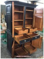 No d’item : BUF-061 Buffet deux corps utilisé pour une salle de bain, tablettes ajustables sur crémaillères. Présentez-vous à la boutique de l’Atelier du vieux pin pour faire votre choix. Quincaillerie décorative et finition à l’ancienne.