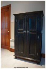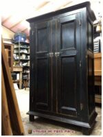 No d’item : ARM-033 Armoire noir patiné construite avec deux portes dans le corps. Huit panneaux creux à mouluration épurée ajoutée. Quatre tablettes ajustables sur crémaillères. Présentez-vous à la boutique de l’Atelier du vieux pin pour faire votre choix. Chacune de nos armoires sont confectionnées en atelier avec notre quincaillerie décorative et notre procédé de finition à l’ancienne. DIMENSIONS : 18 » P x 33 » L x 58 » H
