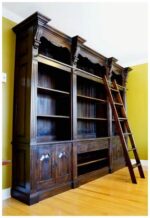 No d’item : BIB-008 Bibliothèque trois sections sur mesure avec échelle. Présentez-vous à la boutique de l’Atelier du vieux pin pour faire votre choix. Toutes nos bibliothèques sont confectionnées en atelier avec notre quincaillerie décorative et notre procédé de finition à l’ancienne. DIMENSIONS : 15 » P x 108 » L x 90 » H