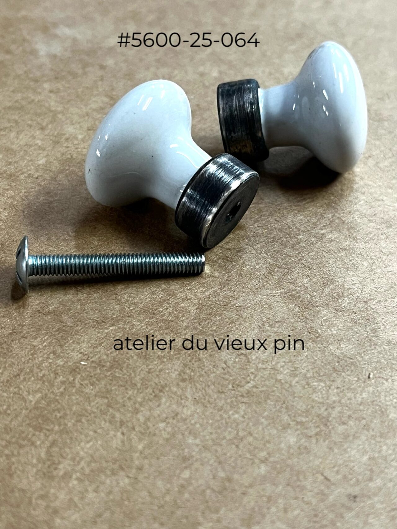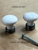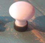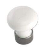 Importé d’Europe, bouton massif en porcelaine blanche de Limoges avec base de métal oxydé.