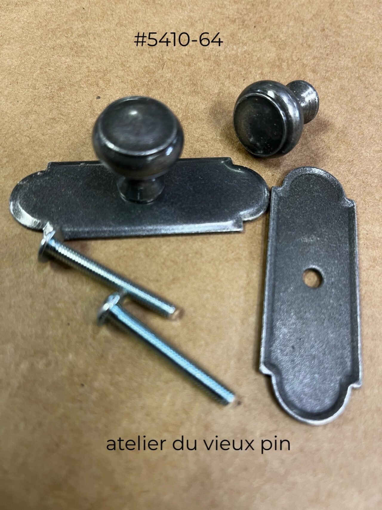 Bouton sur une plaquette décorative en étain.
