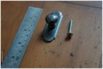Bouton sur une plaquette décorative en étain. Le bouton doit avoir un diamètre de 20 mm.