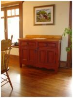Buffet bas deux sections à deux portes et deux tiroirs dans le corps. Six panneaux creux à moulurations ajoutées. Présentez-vous à la boutique de l’Atelier du vieux pin pour choisir le vôtre. Quincaillerie décorative et finition à
