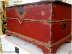 Superbe coffre en pin à mouluration en forme de V. Pentures intérieures, poignées et serrure en fer martellé. La courroie intérieure de soutien est en cuir. Présentez-vous à la boutique de l’Atelier du vieux pin pour faire votre choix. Tous nos coffres sont fabriqués en atelier avec notre quincaillerie décorative et notre procédé de finition à l’ancienne. DIMENSIONS : 19 » P x 36 » L x 20 » H.