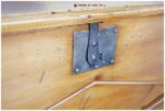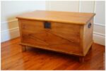 No d’item : COF-012 Beau coffre en pin avec coup de pied. Pentures intérieures, poignées et serrure en fer martelé. La courroie intérieure de soutien est en cuir. Présentez-vous à la boutique de l’Atelier du vieux pin pour faire votre choix. Tous nos coffres sont fabriqués en atelier avec notre quincaillerie décorative et notre procédé de finition à l’ancienne. DIMENSIONS : 19 » P x 36 » L x 20 » H.