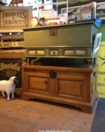 No d’item : COF-011 Magnifique coffre en pin avec pattes galbées à l’avant et pattes tournées à l’arrière. Pentures intérieures, poignées et serrure en fer martelé. La courroie intérieure de soutien est en cuir. Présentez-vous à la boutique de l’Atelier du vieux pin pour faire votre choix. Tous nos coffres sont fabriqués en atelier avec notre quincaillerie décorative et notre procédé de finition à l’ancienne. DIMENSIONS : 19 » P x 36 » L x 20 » H.