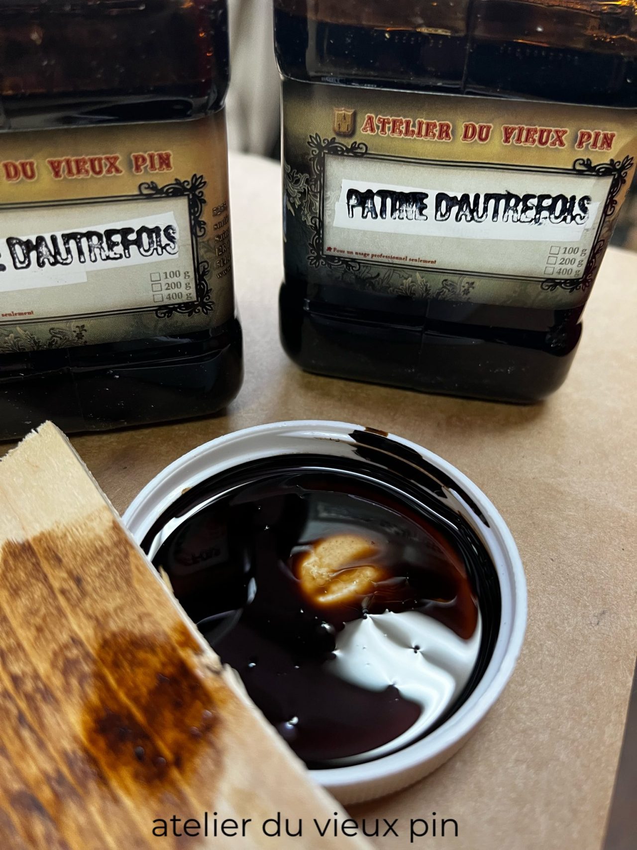 La patine d’autrefois est une solution utilisée pour obtenir un vieillissement prématuré sous forme de glacis.