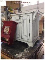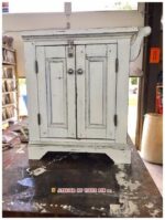 No d’item : VAN-030 Petite vanité loger dans un coin pour une petite salle d’eau, avec fermeture à ralentissement.  Présentez-vous à la boutique de l’Atelier du vieux pin pour faire votre choix. Toutes nos vanités sont confectionnées en atelier avec notre quincaillerie décorative et notre procédé de finition à l’ancienne. DIMENSIONS : 18  » P x 24  » L x 30  » H.