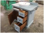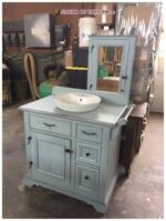 No d’item : VAN-030 Petite vanit. loger dans un coin de petite salle d’eau. Selon votre évier … avec fermeture à ralentissement. Présentez-vous à la boutique de l’Atelier du vieux pin pour faire votre sélection. Toutes nos vanités sont confectionnées en atelier avec notre quincaillerie décorative et notre procédé de finition à l’ancienne. DIMENSIONS : 22 » P x 32 » L x 33 » H.