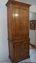 No d’item : VAN-022 Cabinet et rangement divers sur mesure pour la salle de bain. Présentez-vous à la boutique de l’Atelier du vieux pin pour faire votre choix. Tous nos meubles sont confectionnés en atelier avec notre quincaillerie décorative et notre procédé de finition à l’ancienne. DIMENSIONS corps du bas : 18 » P x 30 » L x 34 » H. DIMENSIONS corps du haut: 16 » P x 30 » L x 51 » H