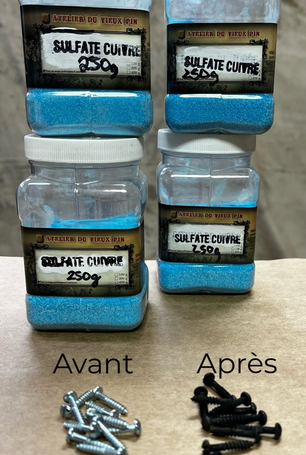 Il fera oxyder le fer naturel comme; verrous, pentures, visserie, clous etc.