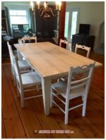 No d’item : TAB-053 Table de salle à manger avec pattes aiguilles. Présentez-vous à la boutique de l’Atelier du vieux pin pour faire votre choix. Quincaillerie décorative et finition à l’ancienne. DIMENSIONS : 38 » P x 76 » L x 30 » H.