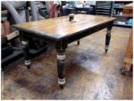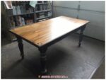 No d’item : TAB-010 Table de réfectoire avec pattes tournées de 4 3/8  » joliement décorées. Le dégagement du plateau à chaque extrémité est de 4 pouces. Un tiroir de 16 pouces. Finition du plateau au rabot. Présentez-vous à la boutique de l’Atelier du vieux pin pour faire votre choix. Quincaillerie décorative et finition à l’ancienne. DIMENSIONS : 72  » P x 38  » L x 30  » H.