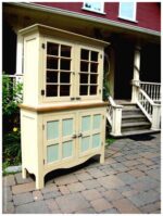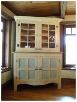Vaisselier deux corps à quatre portes dans le corps avec dormant. Douze panneaux creux et six tablettes fixes. Présentez-vous à la boutique de l’Atelier du vieux pin pour choisir le vôtre. Quincaillerie décorative et finition à l’ancienne.