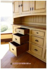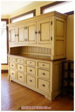No d’item : BUF-033 Buffet deux corps avec huche. Lorsqu’un grand espace de rangement est nécessaire. Panneaux creux avec mouluration ajoutées. Douzes tiroirs a pleine ouverture et quatre portes pour la huche. Présentez-vous à la boutique de l’Atelier du vieux pin pour faire votre choix. Quincaillerie décorative et finition à l’ancienne. DIMENSIONS (Haut) : 17 » P x 80 » L x 38 » H. DIMENSIONS (Bas) :19 » P x 80 » L x 42 » H.