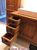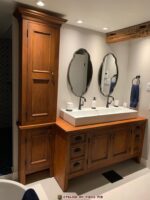 No d’item : VAN-031 Magnifique demeures avec splendide vanité sur mesure. avec fermeture à ralentissement.  Présentez-vous à la boutique de l’Atelier du vieux pin pour faire votre sélection. Toutes nos vanités sont confectionnées en atelier avec notre quincaillerie décorative et notre procédé de finition à l’ancienne. DIMENSIONS : 22  » P x 60  » L x 34  » H.