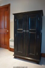 Ce verrou est muni d’une poignée à queue retroussée, en fer forgé, elle est monté sur une plaquette de 1/8 de pouce.