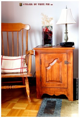No d’item : ARM-020 Armoire de style français possédant deux portes dans le corps du meuble et d’un dormant à caissons. Six panneaux soulevés à traverses profilées. Cinq tablettes ajustables sur crémaillères. Présentez-vous à la boutique de l’Atelier du vieux pin pour faire votre choix. Toutes nos armoires sont confectionnées en atelier avec notre quincaillerie décorative et notre procédé de finition à l’ancienne. DIMENSIONS : 19  » P x 46  » L x 76  » H