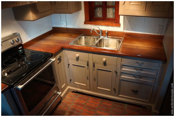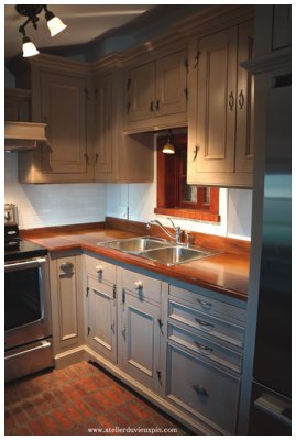 No d’item : CUI-031 Présentez-vous à la boutique de l’Atelier du vieux pin pour faire votre choix. Toutes nos armoires de cuisine sont confectionnées en atelier avec notre quincaillerie décorative et notre procédé de finition à l’ancienne. DIMENSIONS : Selon vos besoins.
