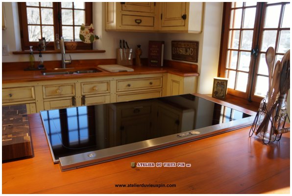 No d’item : CUI-033 Présentez-vous à la boutique de l’Atelier du vieux pin pour faire votre choix. Toutes nos armoires de cuisine sont confectionnées en atelier avec notre quincaillerie décorative et notre procédé de finition à l’ancienne. DIMENSIONS : Selon vos besoins.