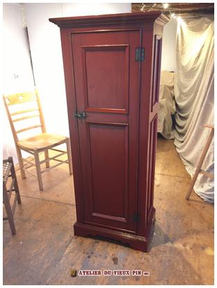 No d’item : BON-013 Petite armoire a rangement avec trois tablettes ajustable sur crémaillères. Présentez-vous à la boutique de l’Atelier du vieux pin pour faire votre choix. Chacune de nos bonnetières sont confectionnées en atelier avec notre quincaillerie décorative et notre procédé de finition à l’ancienne. DIMENSIONS : 16  » P x 18-1/2  » L x 60  » H.