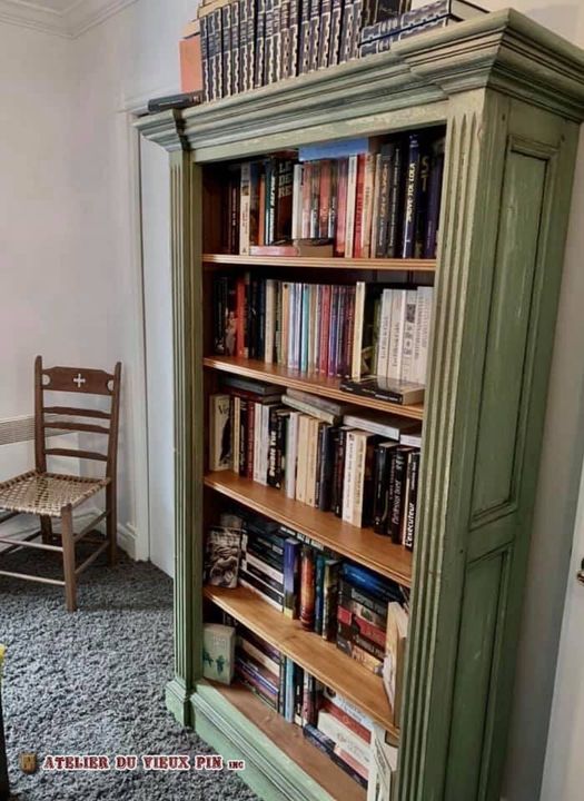 No d’item : BIB-017 Bibliothèque trois sections sur mesure avec échelle. Présentez-vous à la boutique de l’Atelier du vieux pin pour faire votre choix. Toutes nos bibliothèques sont confectionnées en atelier avec notre quincaillerie décorative et notre procédé de finition à l’ancienne. DIMENSIONS : selon vos besoins.