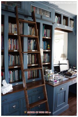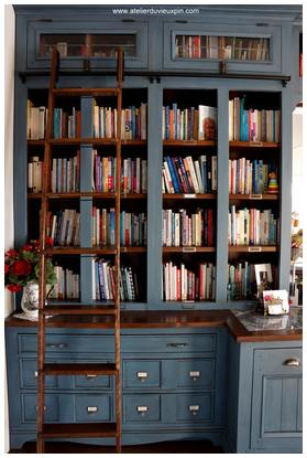 No d’item : BIB-010 Bibliothèque deux corps avec plusieurs sections. Nous sommes spécialisés en module intégrés. Présentez-vous à la boutique de l’atelier du vieux pin pour faire votre choix. Toutes nos bibliothèques sont confectionnées en atelier avec notre quincaillerie décorative et notre procédé de finition à l’ancienne. DIMENSIONS : Selons vos disponibilités.