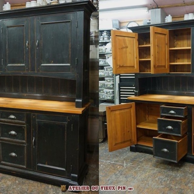 • Armoire noir antique en pin de 58 '' Armoire noir antique en pin de 58 ''