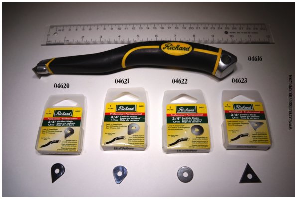 Grattoir avec lame triangulaire (04616-X) , lame de remplacement en carbure en forme de goutte d'eau (04620) , lame de remplacement en carbure en forme de poire (04621) , lame de remplacement en carbure en forme de rond (04622) , lame de remplacement en carbure en forme de triangle (04623)
