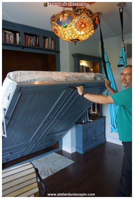 No d’item : LIT-011 Lit escamotable idéal pour un endroit restreint, le mécanisme moderne de levé est efficace et performant. Les pattes se détractent aussi automatiquement. Présentez-vous à la boutique de l’Atelier du vieux pin pour faire votre choix. Tous nos lits escamotables sont fabriqués en atelier avec notre quincaillerie décorative et notre procédé de finition à l’ancienne.