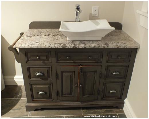 No d’item : VAN-018 Petite vanité à six tiroirs progressifs ainsi qu’une façade basculante. Et deux portes à panneaux soulevés avec mouluration ajoutée. Tiroirs à pleine ouverture  avec fermeture à ralentissement.  Présentez-vous à la boutique de l’Atelier du vieux pin pour faire votre choix. Toutes nos vanités sont confectionnées en atelier avec notre quincaillerie décorative et notre procédé de finition à l’ancienne. DIMENSIONS : 21  » P x 45  » L x 31  » H.