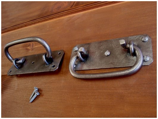 Poignée en fer martelé comme on retrouve sur les coffres primitif.