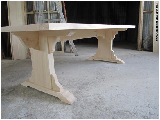 No d’item : TAB-049 Table de cuisine avec pieds de style. Présentez-vous à la boutique de l’Atelier du vieux pin pour faire votre choix. Quincaillerie décorative et finition à l’ancienne. DIMENSIONS : 38  » P x 72  » L x 30  » H.